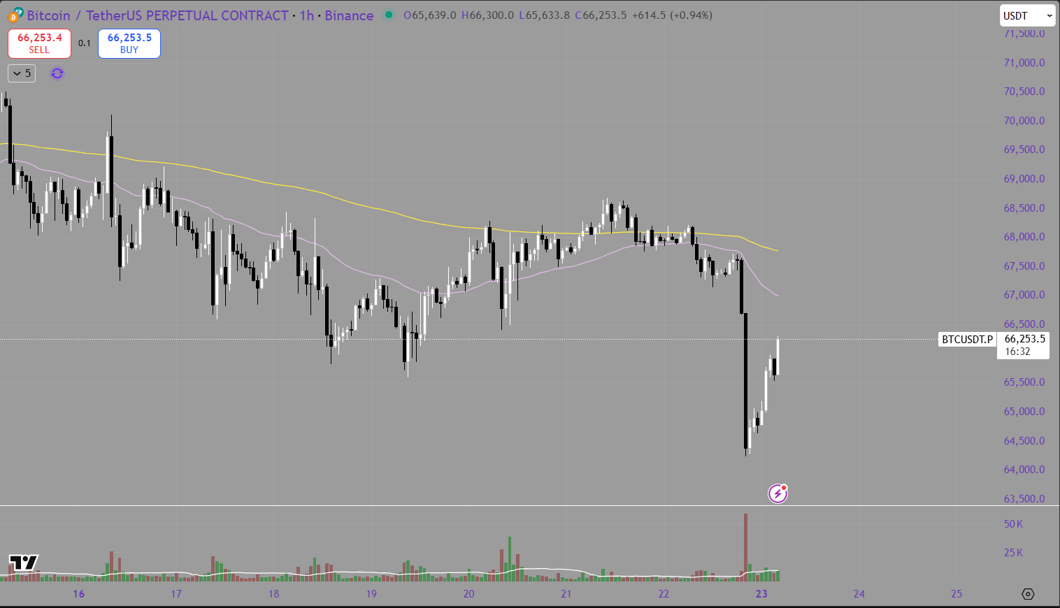 In short, the hourly chart reflects a market attempting to stabilise after liquidation-driven moves, but without the structure that would suggest strong institutional re-entry just yet.