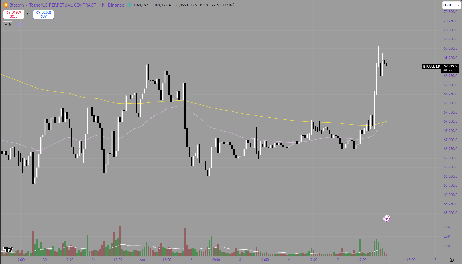 At the same time, the hourly chart still carries a note of caution. The push into the low-$69,000 area looked strong, but not explosive. There was no true vertical breakout candle that changed the broader market psychology. Instead, the move looked more like a technical rally driven by improving short-term momentum, short covering, and dip buying. In an environment where geopolitical headlines can still move oil, bonds, the dollar, and broader equities very quickly, that means BTC remains vulnerable to sharp reversals if macro sentiment deteriorates again.